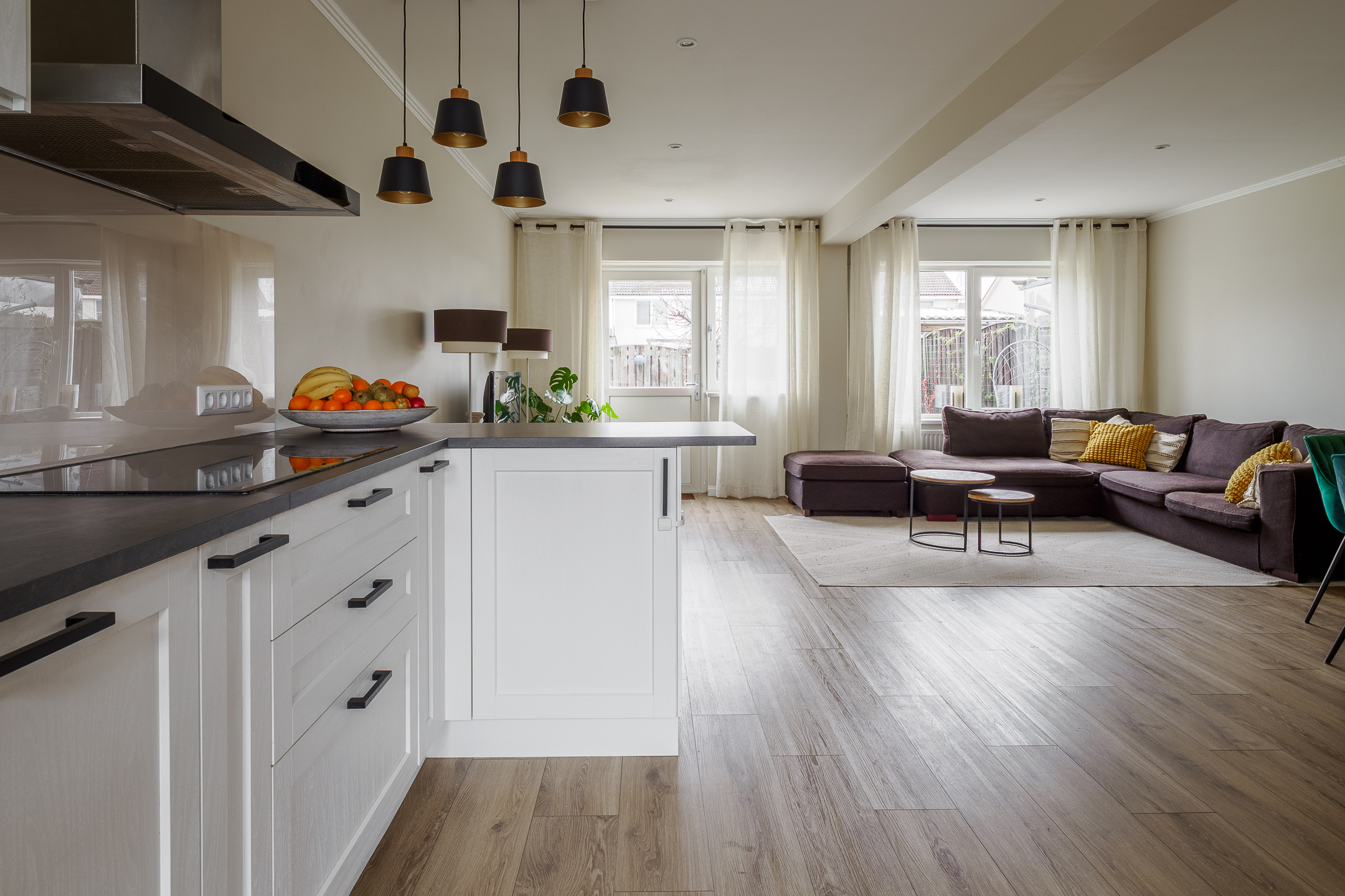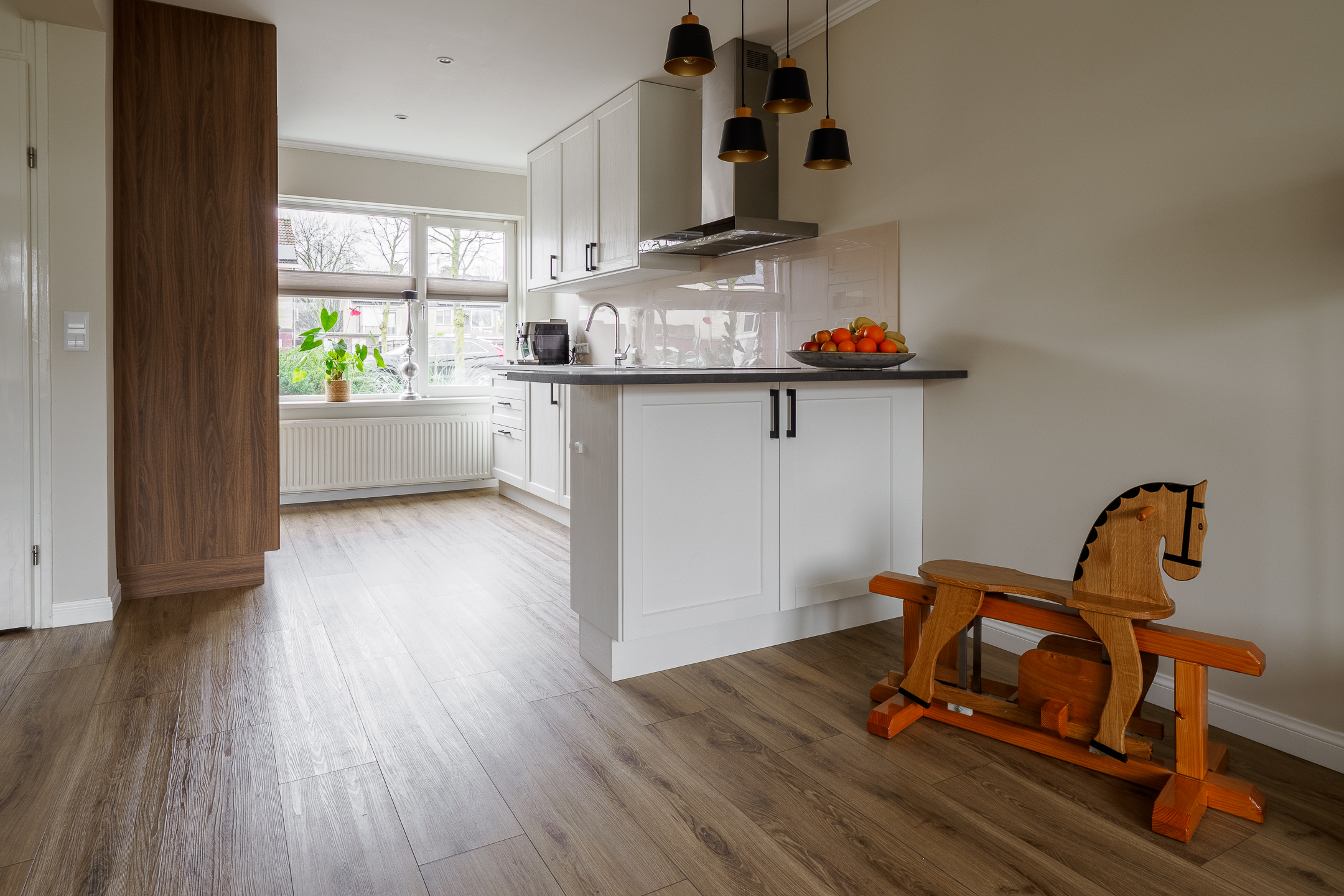- keuken verplaatst aan de voorzijde waardoor er een extra ruime woonkamer is ontstaan